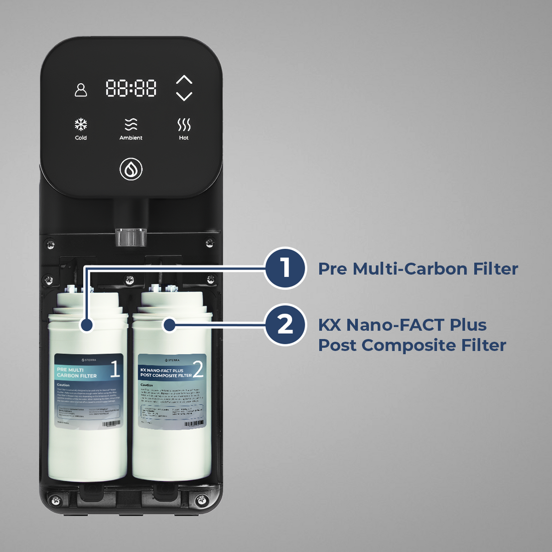 Filter change duration: Every 6 months (for Pre Multi-Carbon, KX Nano-Fact with Post Composite Filter, and Alkaline)